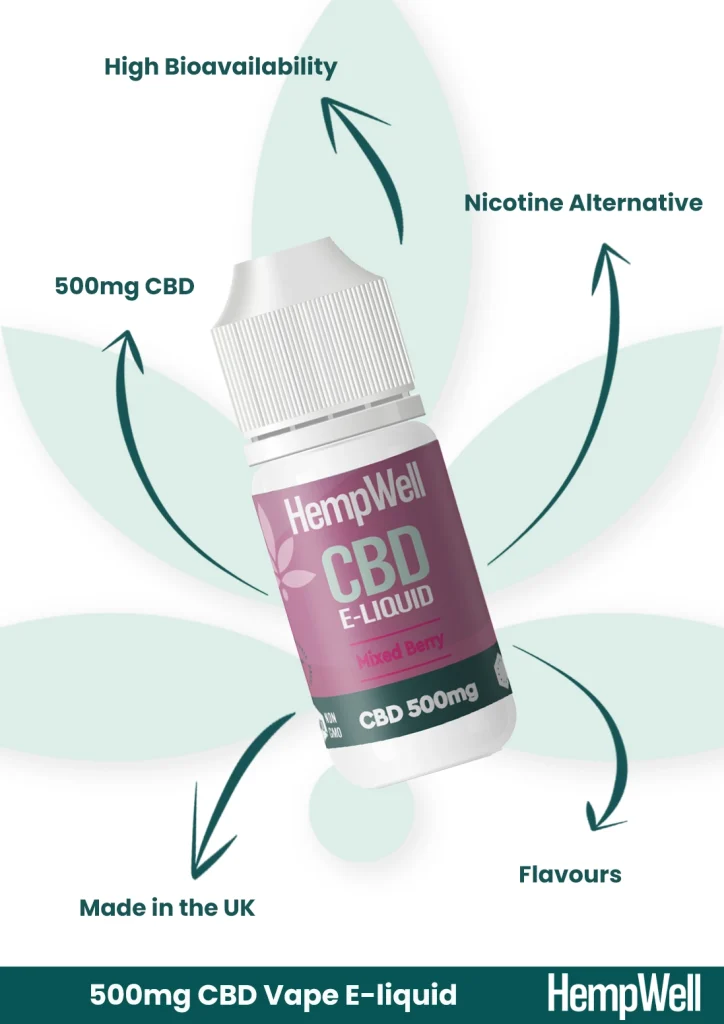 A medium strength CBD vape e-liquid with 500mg CBD. Juicy and sweet mixed berry flavouring for the best CBD vape experience. Nicotine free.